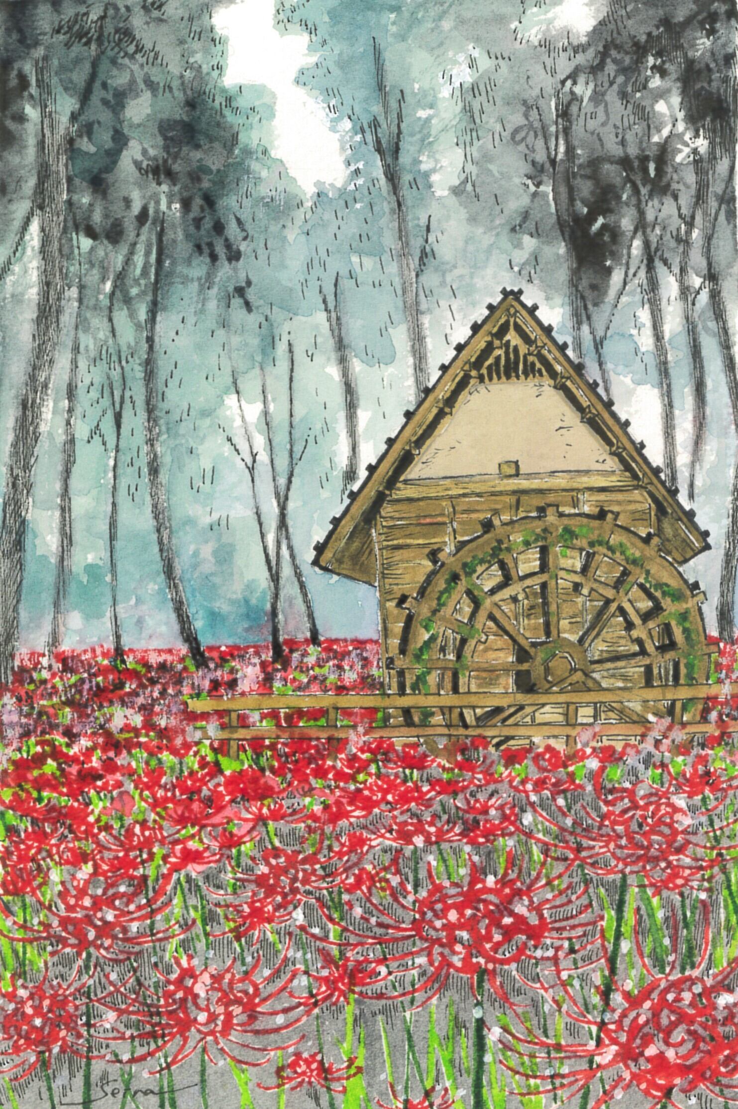 画材:水彩、アクリル、色鉛筆