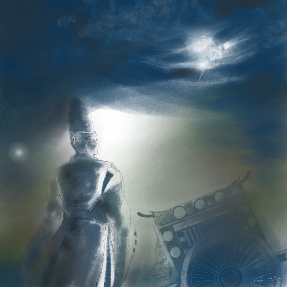 風に たなびく雲の たえ間より